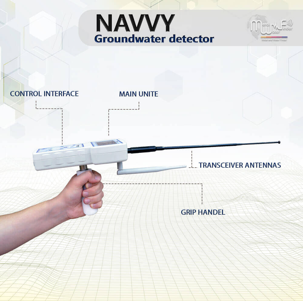 NAVVY (الحفار)الجهاز الجديد والمتطور للكشف عن المياه الجوفية , يتمتع جهاز ناڤي بميزات وخصائص حديثة تمكنه من رصد المياه الجوفية بكل دقة وفعالية, الحساسية العالية في سرعة كشف الأهداف والتحقق الدقيق من موقع المياه والمؤشرات الصوتية التي تصدر لتحديد مسار موقع الهدف من أهم هذه الميزات إضافة إلى البوصلة الرقمية على شاشة الجهاز التي توضح الاتجاهات واتجاه الهدف كذلك , يصل عمق الكشف في هذا الجهاز لعمق 500 متر ويستطيع كشف الأهداف من بعد 2000 متر دائري.